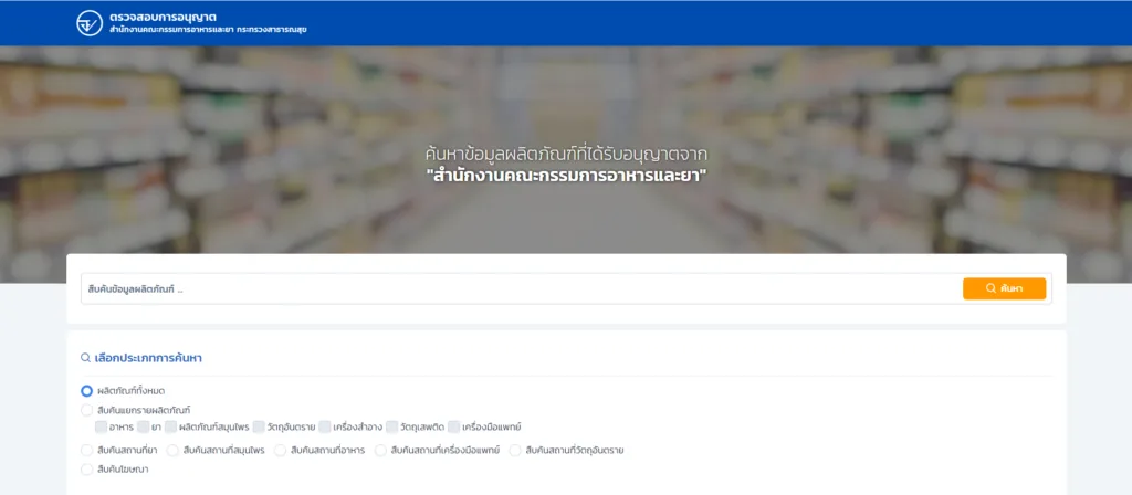 คุณสามารถตรวจสอบผ่านระบบสืบค้นข้อมูลผลิตภัณฑ์ของสำนักงานคณะกรรมการอาหารและยา (อย.) ได้ง่ายๆ ดังนี้